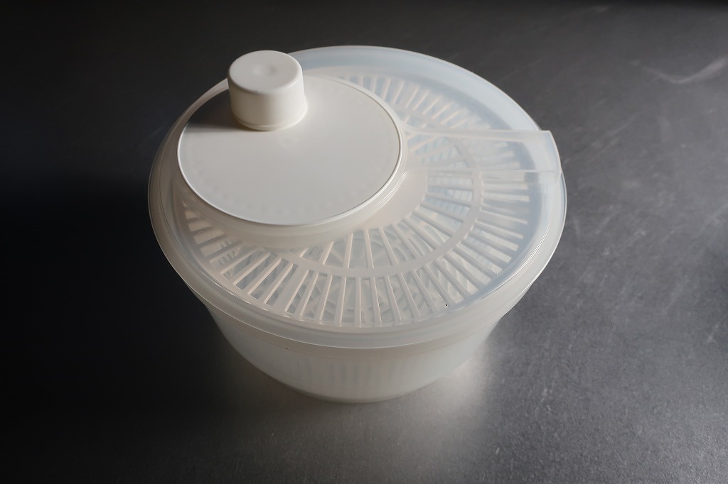 写真を撮れなかったのですが、油通しをしました。フライパンにサラダ油を入れて180℃に予熱します。筍とピーマンを入れ、さっと火を通し、すくい網でザルにあげます。そして水切り器で油をきります。ここポイントです。