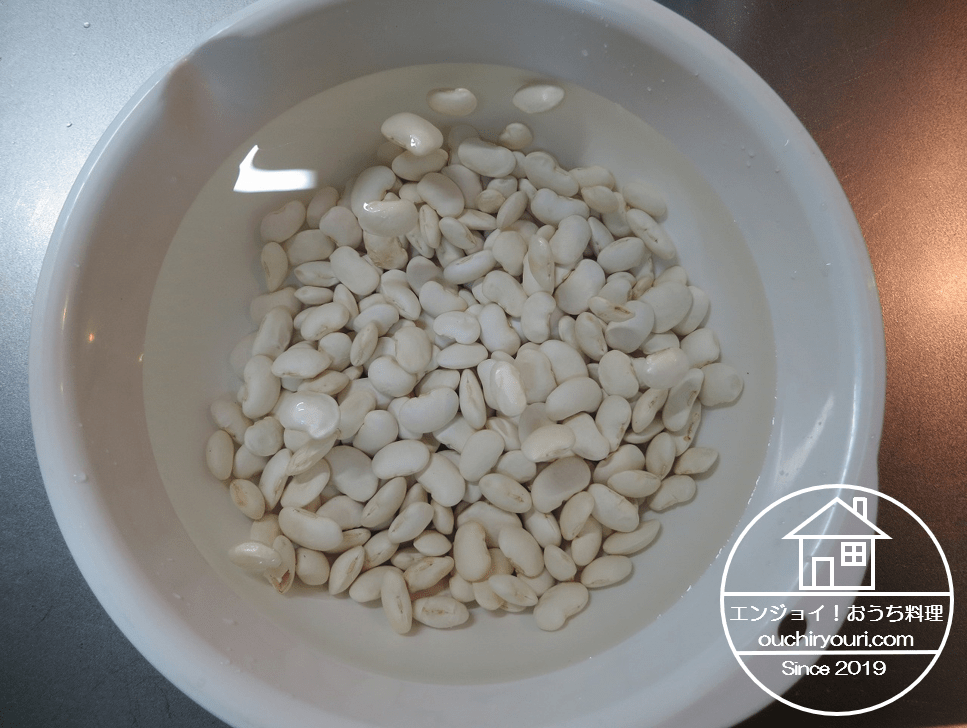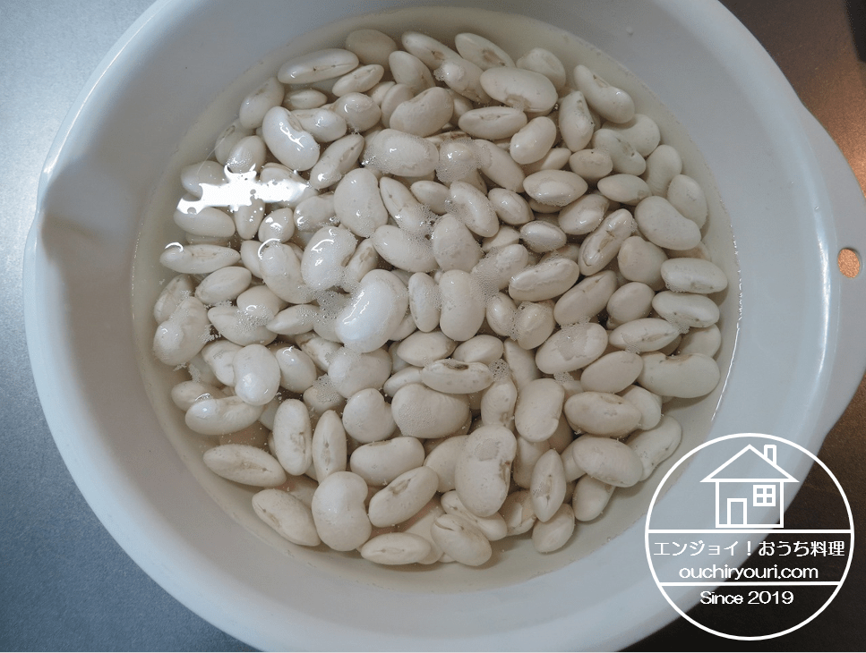 白いんげん豆を買いました。これでいいのかな?えらく高かったです。乾燥200gで800円以上・・・。白いんげん豆は日本人にはあまりなじみのない食材なのでよくわからないです。今回は合計3袋使いました。