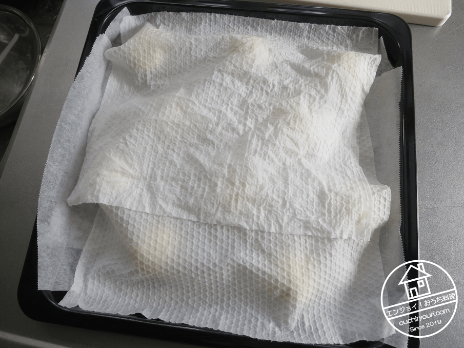 濡らしたキッチンペーパーをかけて40℃のオーブンで2次発酵させました。