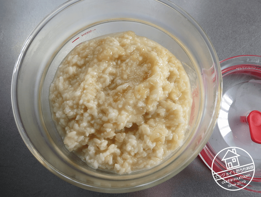 材料(大体の分量):麹200g、ごはん(炊飯後)200g、水600cc