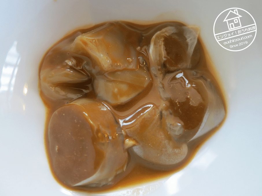 タレを洗い流すとこんな感じです。固まっておらず中はまだゲル状です。