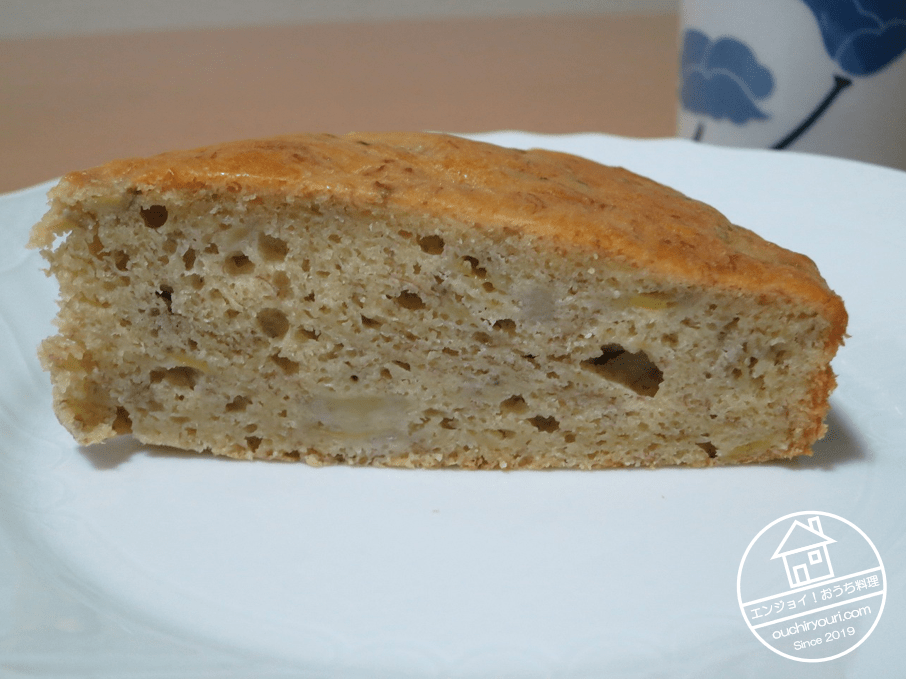 180℃のオーブンで40分ちょい焼きました。焼いた直後はふんわり膨らんでましたが、冷めたらしぼんでどっしりしました。写真は冷めた後。
