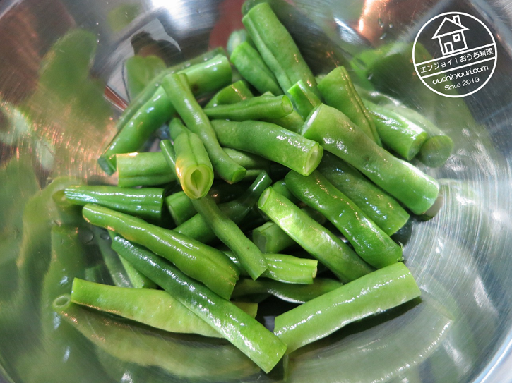 たまたまあったインゲンを彩りに加えます。