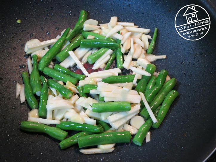 生姜泡菜とインゲンを素炒めします。