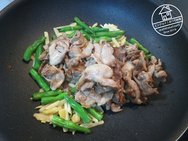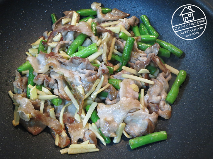 具として入れた生姜がとても刺激的です!噛むと口の中が一瞬火事になりますが、唐辛子と違ってすぐに辛みがひきますし、爽やかな辛みです。また生姜を噛むと香りがわっと広がって凄いです。生姜と豚肉、生姜とインゲンの相性は言うまでもなくとても良いです。