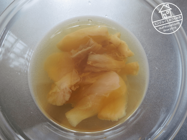調理していきます。いきなり油泡(ユーパオ)はハードルが高すぎるので、普通に水煮で戻すことにしました。
