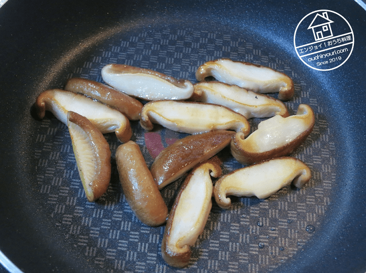 椎茸を炒めて入れます。椎茸もネット上で唯一見つかった紅焼鹿筋に入っていました。