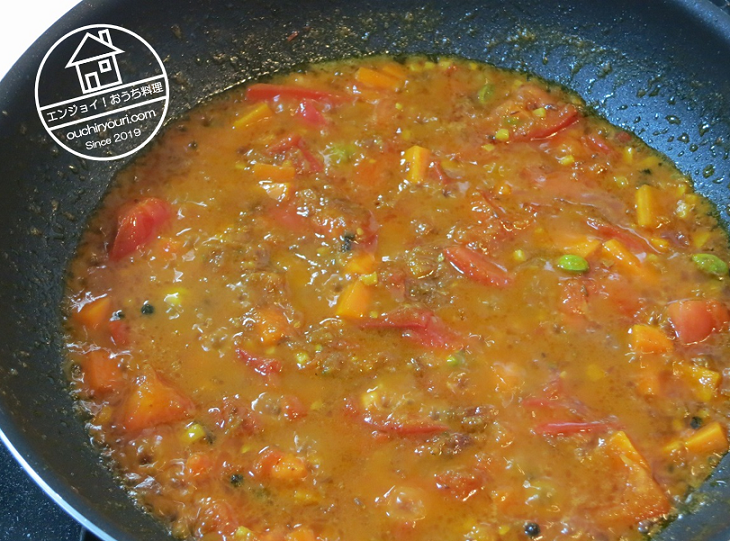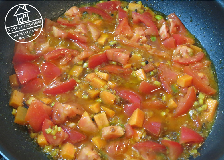 トマトは炒めるとすぐに溶けます。