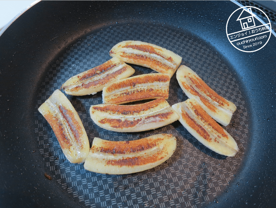 バナナサンドを作ります。バナナを焼きます。焼くとねっとりして甘い香りが出ます。