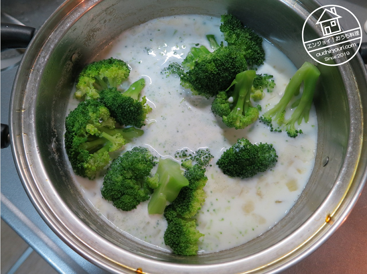 茹で汁にブロッコリーの栄養が溶け出てそうなので、茹で汁にジャガイモと玉ねぎを加えて煮ます。