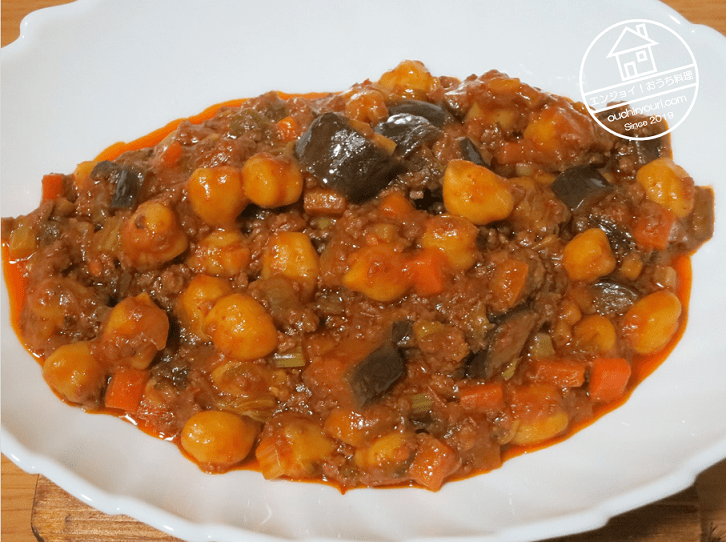 ひよこ豆のカレーは豆だけで作ることが多いようですが、やはり肉がないと寂しいので肉を入れました。また栄養バランスを良くする目的で野菜を沢山入れました。