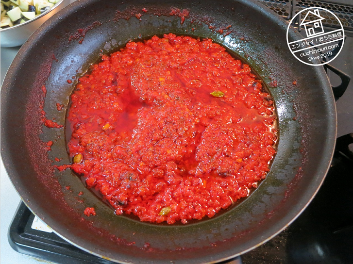 使うスパイスは、シナモン、生姜、クミン、カルダモン、唐辛子、コリアンダー、ローリエ、クローブ、ターメリックです。ニンニクは後から別ルートで入ります。