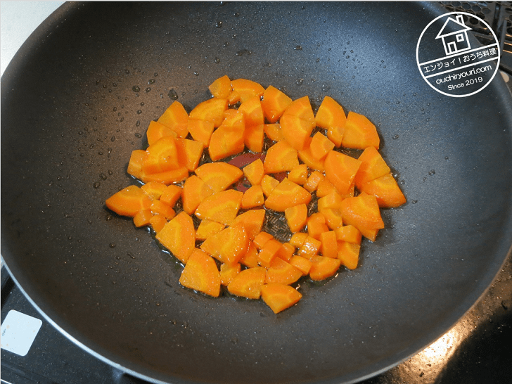 人参1本を炒めます。人参は味が強いので量を控えめにします。