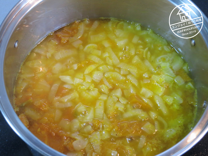 忙しい朝の備えとして、かぼちゃのポタージュを作りました。なお正確に言うと、かぼちゃ、玉ねぎ、ジャガイモのポタージュです。