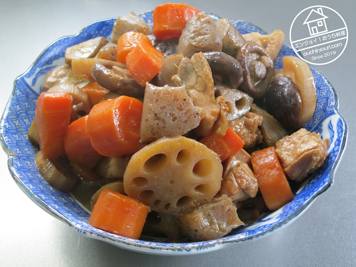 作り方は簡単です。具を炒めて煮る。以上です。筑前煮の特徴は炒めるところにあるようです。