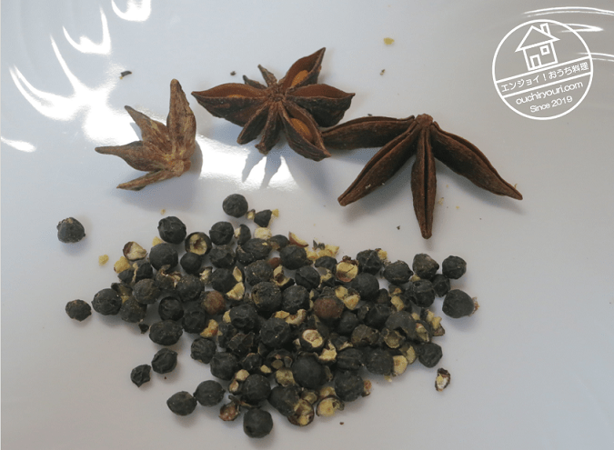 6)スパイス:八角、黒胡椒、ニンニク、ショウガ