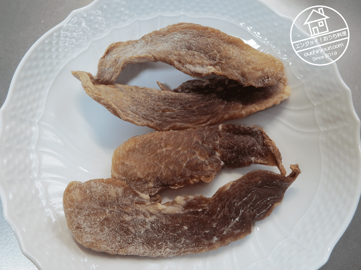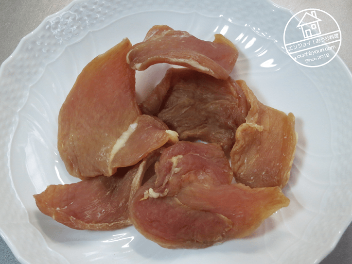 塩漬けにして干した鶏胸肉です。作り方は豚肉と同じです。