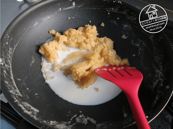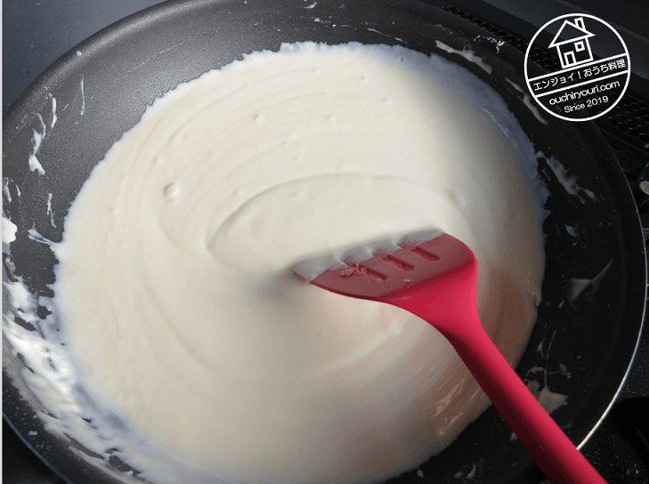 牛乳を少量入れたらまたダマができました。牛乳は温めるようにと書いてあるレシピが多いですが、個人的には温める必要はないと思います。