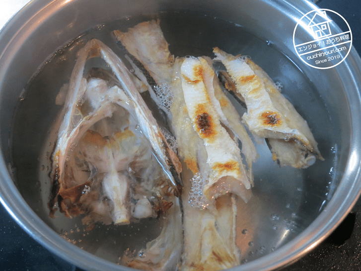 カマスのアラで吸い物を作りました。今回はちょっと一工夫して焼いて香ばしさを加えてみました。