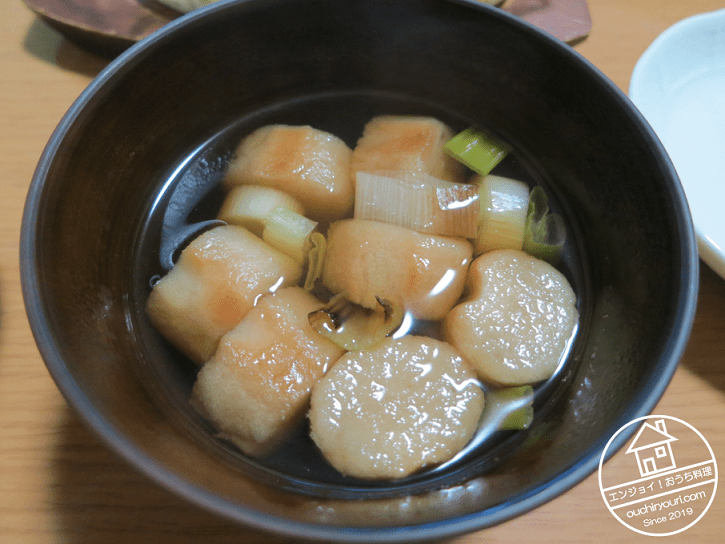 カマスは取り出し、ネギとフを入れます。薄口醤油と酒で味付けて完成です。醤油を入れるまではあまり旨味を感じなかったのですが、醤油を入れた途端に強い旨味を感じました。醤油を入れるとベースのダシの味が途端に際立つのは不思議です。