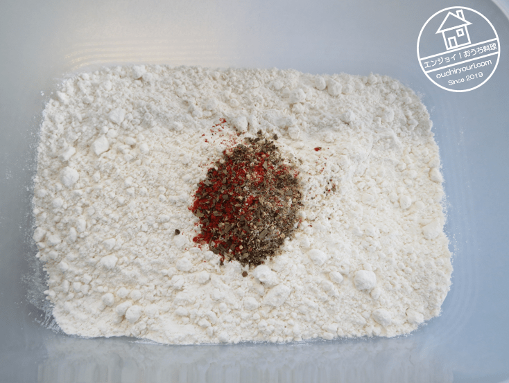 個人的にはもうほぼわかりました。オリジナルチキンの最大の特徴は①グルタミン酸ナトリウムです。これが衣に大量に入っています。それから②塩。これも限界まで入っています。そして③胡椒。この3つによりインパクトの強いジャンキーな味の魅力を作り出しています。味付けに関してはここまでで既に8割完成です。