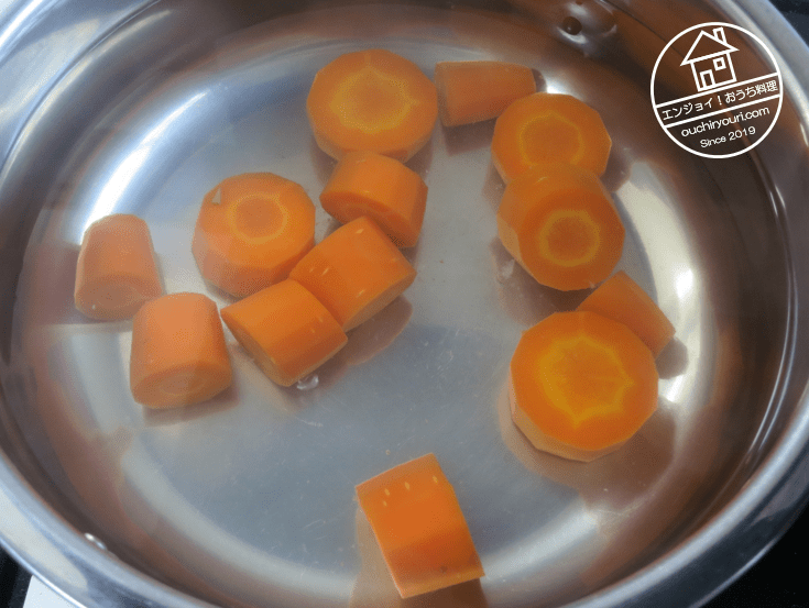 人参を下茹でします。