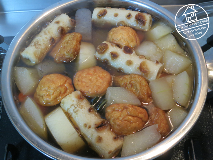 今回はそこまでは手をかけられなかったので、練り物は買いましたが、ダシはちゃんととり、食材の下ごしらえも出来るだけ丁寧に行いました。