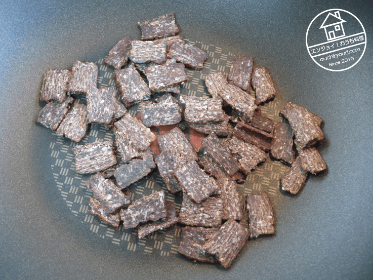 固いので出刃包丁で薄切りにしました。1枚だけそのまま味見してみたら完璧にサラミの味でした。サラミって自作できるんですね。ただ、豚肉を使うので菌がちゃんと死んでるか確認できない点が不安ですが。