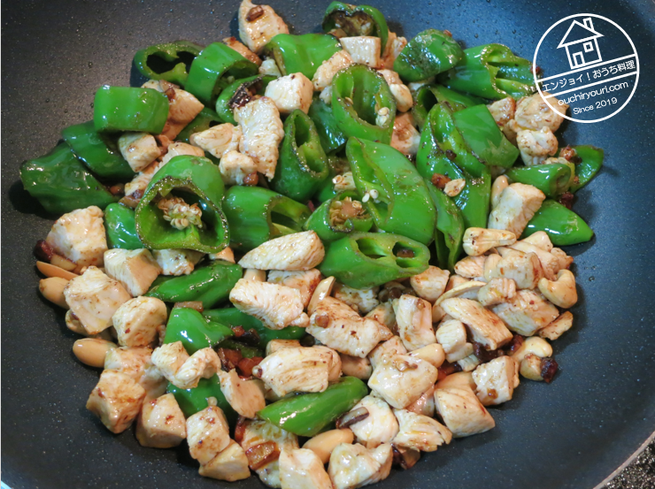 冷蔵庫に万願寺唐辛子的なものがあったので、宮保鶏丁を作ることにしました。