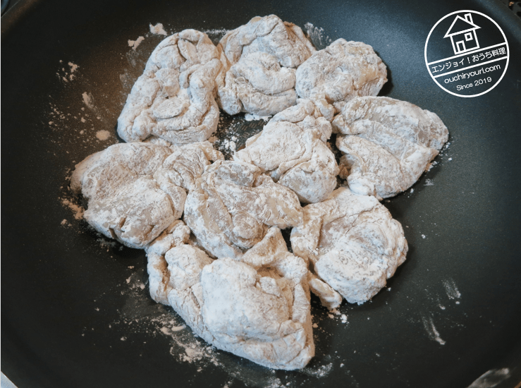 今回は小麦粉と片栗粉を半々に混ぜた粉にしました。粉のきめが細かく、ダマにならず綺麗にコートできました。あまり信じてなかったのですが、この配合はとても良かったです。今までの苦労は何だったのか。