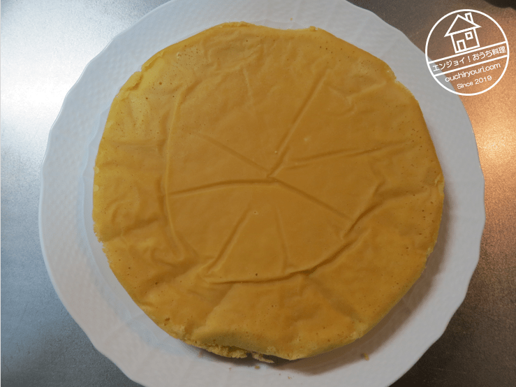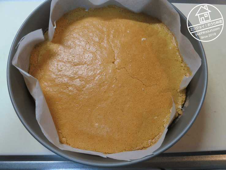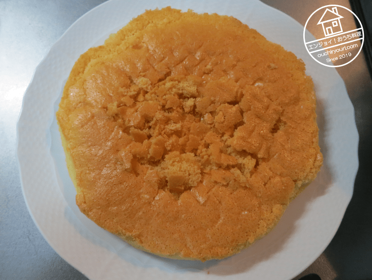 まぁまぁ美味しかったですが、スポンジは改良の余地ありでした。焼いたときに下だった面に泡がなく、みっちりとした生地になっていました。次回は卵白をしっかりと泡立ててふんわりとしたスポンジを作りたいです。