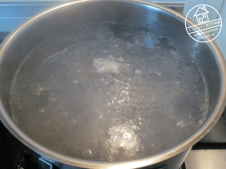 これから煮込んでダシをとるわけですが、普通の水道水(軟水)ではなく、硬水を使います。