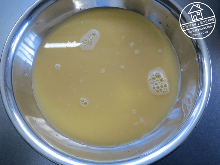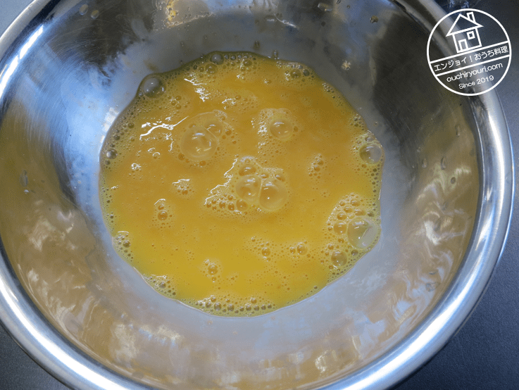 卵4個をよく溶きます。