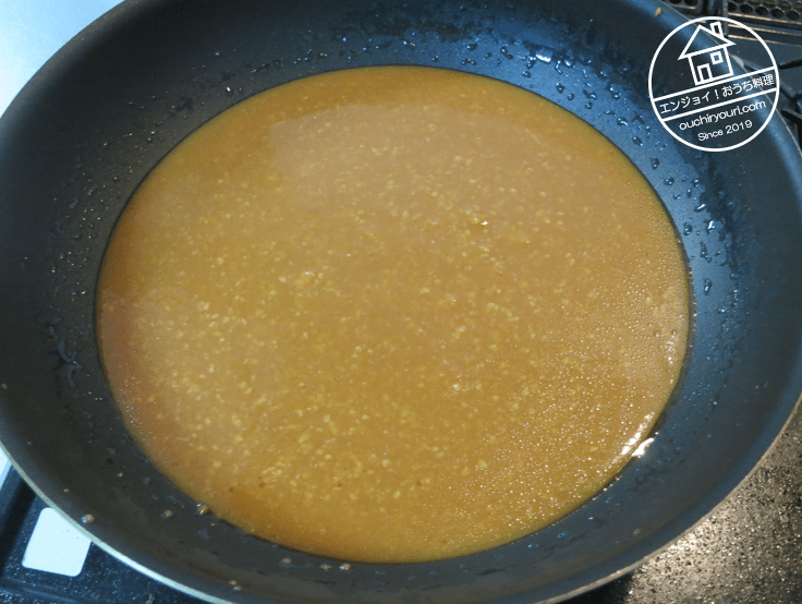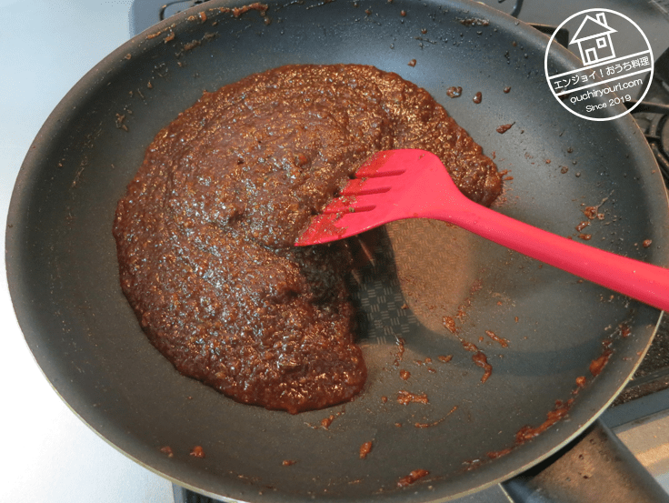 フライパンを火にかけて、加熱しながら味噌を解きほぐします。