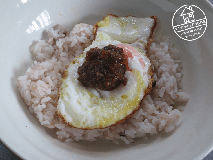 蕗味噌はごはんに塗って食べるのが基本です。目玉焼き丼の味付けにしてみたら動物性の旨味と脂が加わって凄く美味しかったです。爽やかな春の風が吹き抜けました。