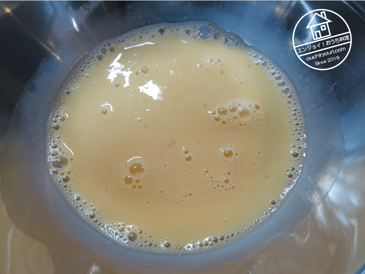 卵1個と牛乳50ccを混合します。