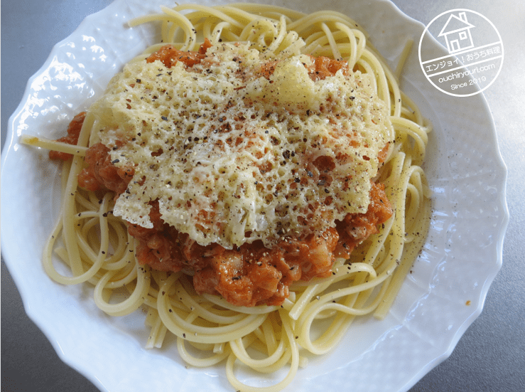妻からスパゲッティーのリクエストがあったので、作り置いていたミネストローネを加工してトマトベースのスパゲッティーソースを作りました。