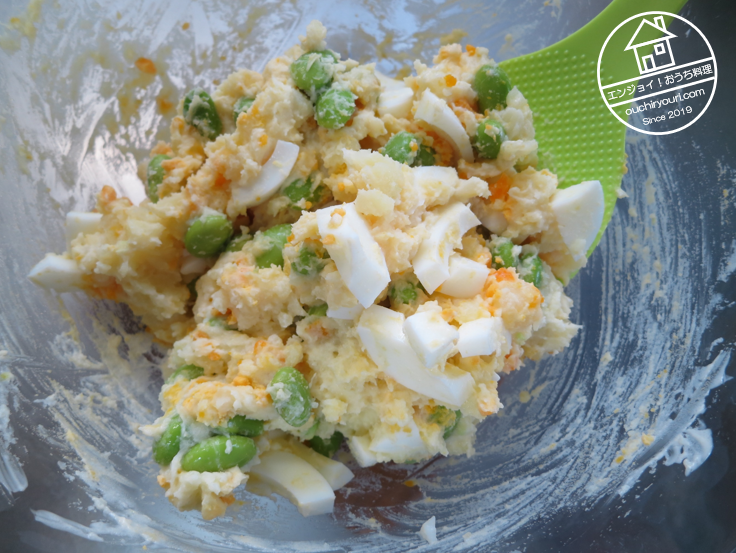 予想通り凄く美味しいです。食感に欠けるポテトサラダに加わった枝豆が良いアクセントになっています。沢山作ったのですが、美味しかったのであっという間に消えてしまいました。