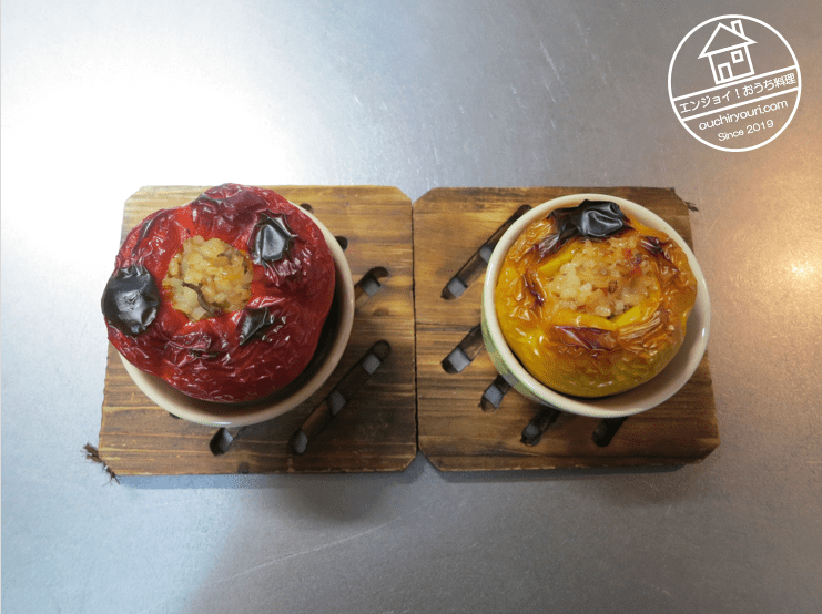 TVのギリシャ紹介の番組で見たイェミスタ(野菜に米を詰めてオーブンで焼き上げる料理)が美味しそうだったので、見様見真似で作ってみました。