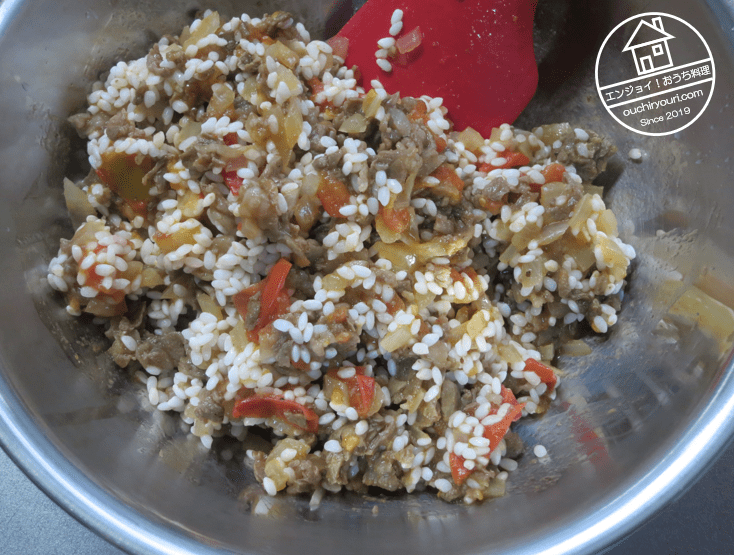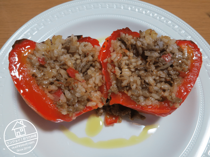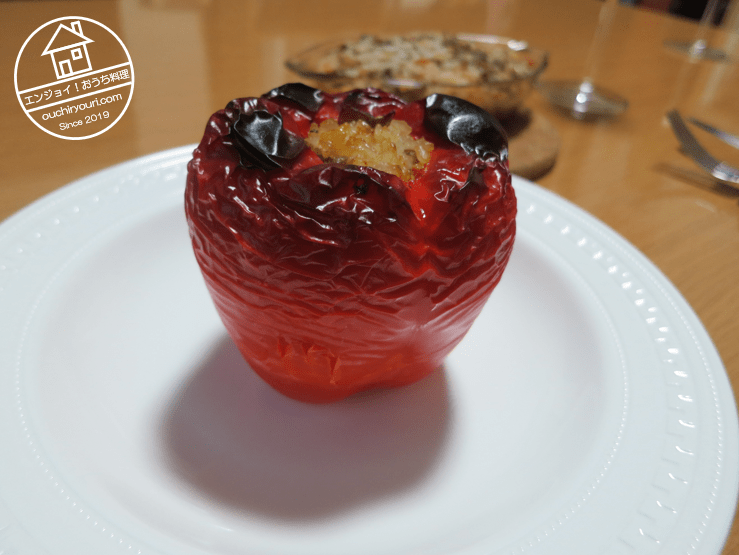米がいい具合に炊けていて、美味しいです。パプリカもよく火が通って、とろけるように柔らかく、甘みが出ていて美味しいです。オレガノの風味がギリシャにいるかのような錯覚を引き起こし、本格的です。