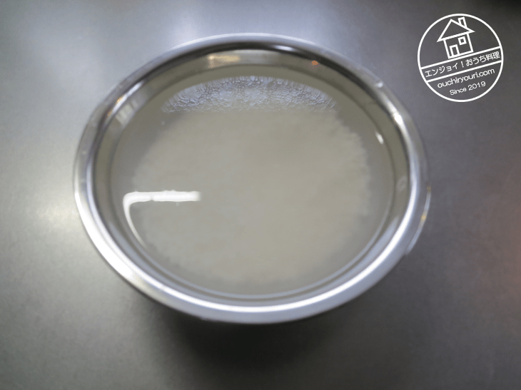 米1合を浸水します。余った水は捨てるので、水加減は適当でよいです。