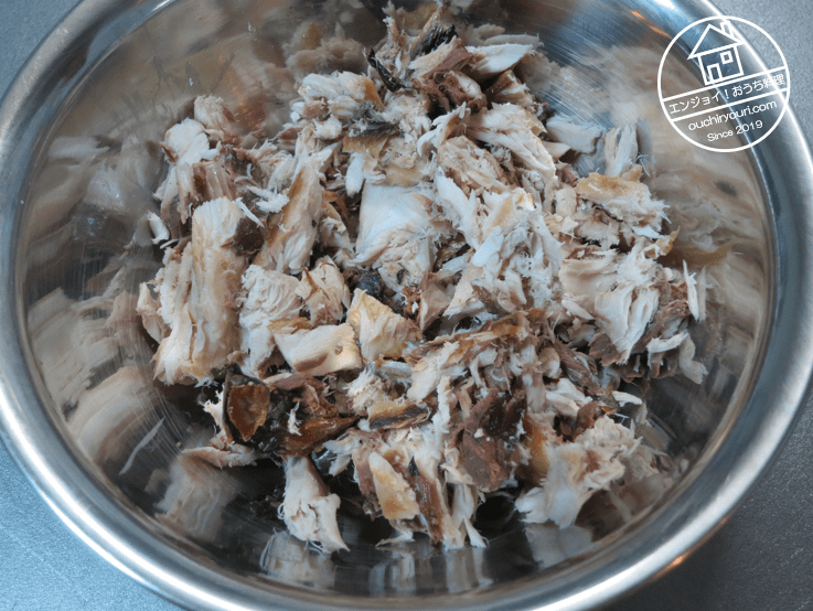 鯖を解して骨を取り除き、塩とレモンで調味します。