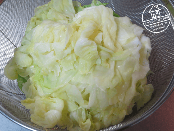ラップにくるみ電子レンジで600W/5分加熱しました。芯をくりぬき、葉っぱを破かないように丁寧に一枚ずつ剥がします。この工程がめんどくさい。キャベツの葉は剥がしやすいようにはできていません。