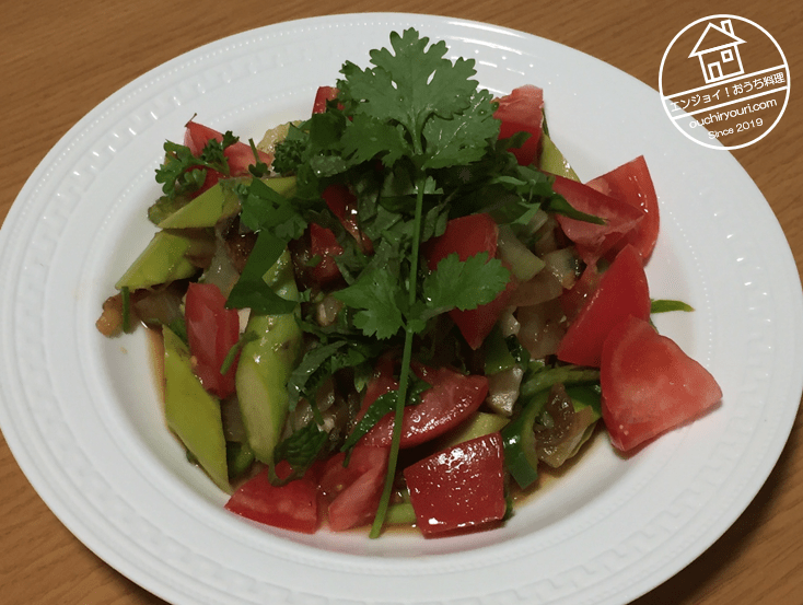 予め野菜のマリネを作っておきます。炒めた玉ねぎ(本来は生ですが、つわり中の妻がNGだったので炒めました。)、茹でたアスパラガス、生ピーマン、生トマト、生セロリ、以上をすし酢、オリーブ油、醤油でマリネしておきます。