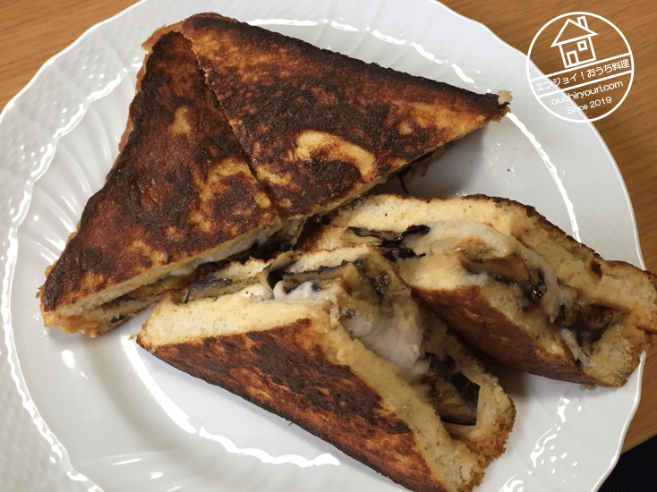 モンテクリストの完成です!具はハム、焼きナス、チーズにしました。パンが外はカリッ中はふんわりとしていて美味しかったです。