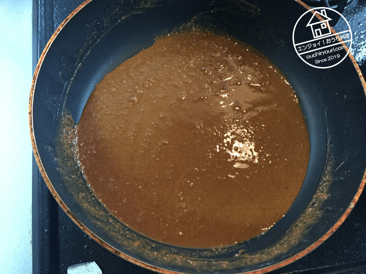 赤ワインを煮詰め、しっかりと濃縮しました。とても良い色合いになりました。あの洋食屋のカレーはまさにこんな色をしていました。ここに肉とスープを注げば目標としていた洋食屋のカレーになったと思います。