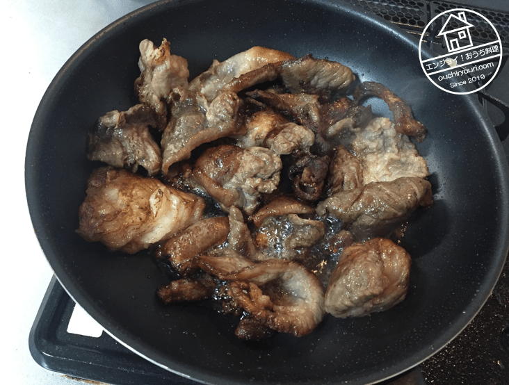 ちょっと良いめの国産牛の角切り肉600gをこんがり焼きました。これをすじ肉のスープで煮込みます。今回は30分間煮込みましたがまだちょっと固かったです。次回は1時間煮込もうと思います。