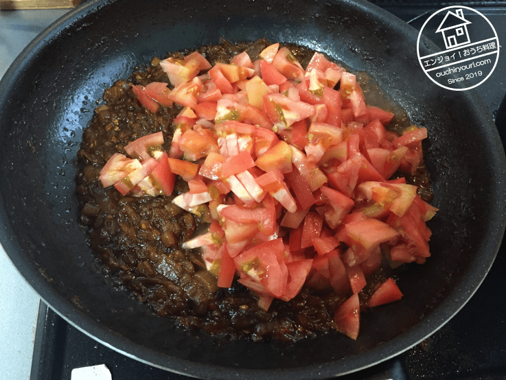 小ぶりの生トマト5個を刻んで投入します。