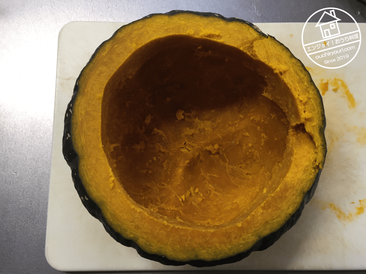 生協で質の良さそうなカボチャが買えました。その特徴を活かすため、丸ごとグラタンにすることにしました。