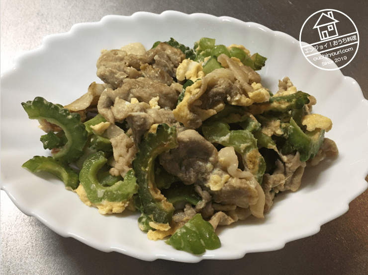 普通のゴーヤと合わせてチャンプルーにしました。イボなしゴーヤはシャキシャキしていて、普通のゴーヤより美味しいです。細胞一個一個が水でパンパンに満ちているような感じです。